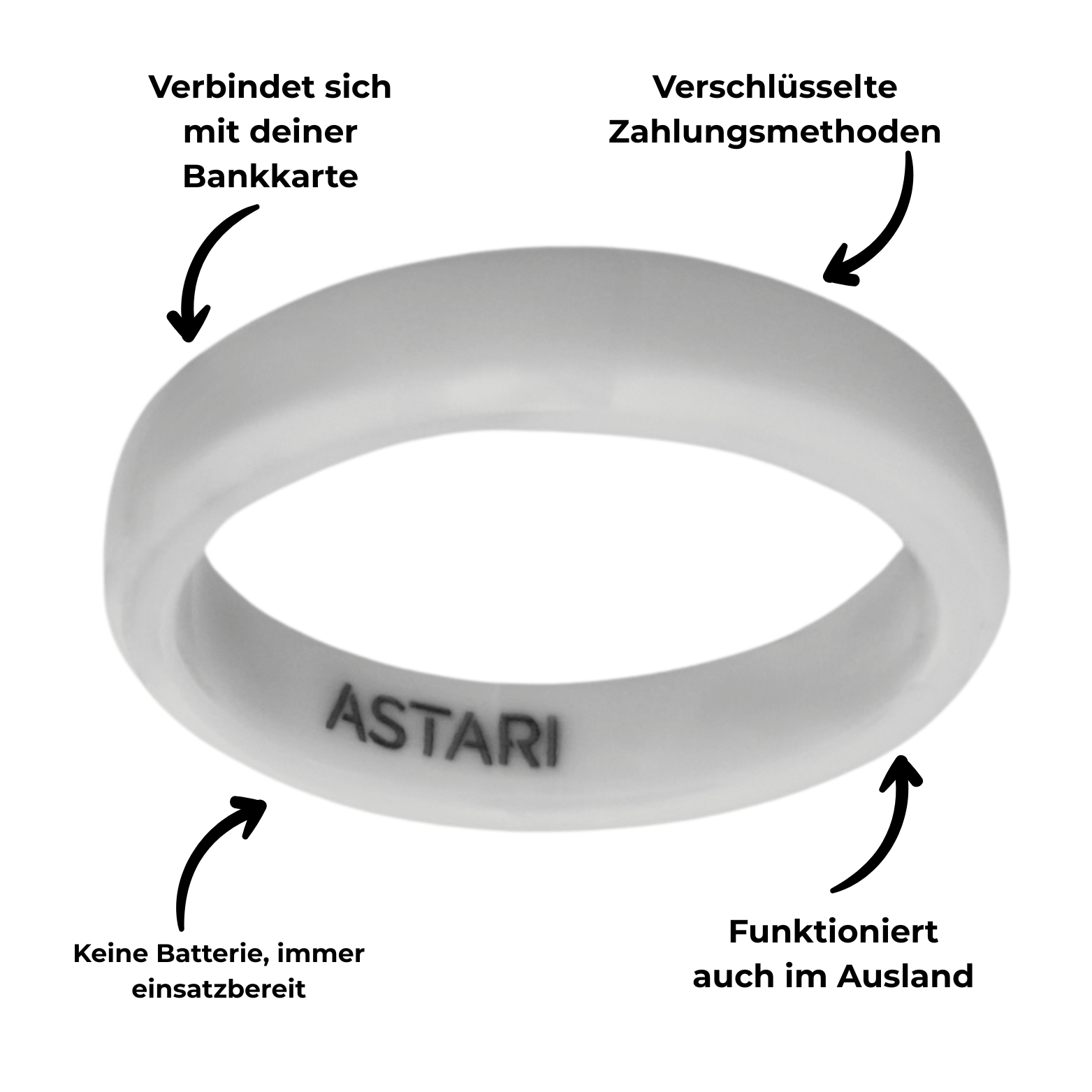 Dadurch sind Astari Wearables eine sichere, zuverlässige und private Zahlungsmethode – ganz ohne Smartphone, Portemonnaie oder Ladegerät.