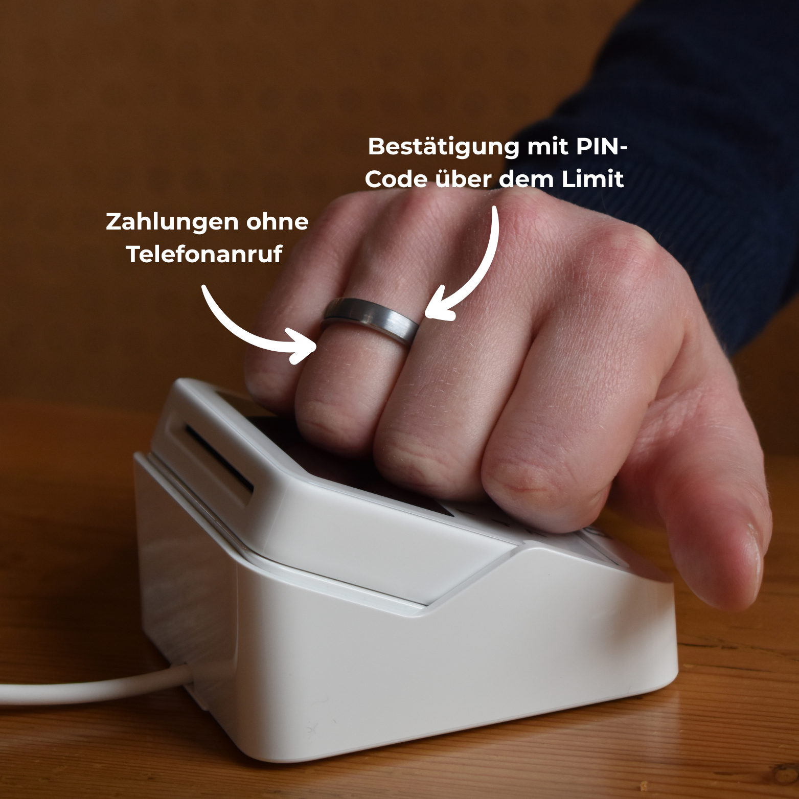 Funktioniert nur wenn es einige Sekunden absichtlich an das Terminal gehalten wird. Bei größeren Einkäufen oder mehreren kleineren Transaktionen werden Sie aufgefordert Ihren PIN Code zu bestätigen.