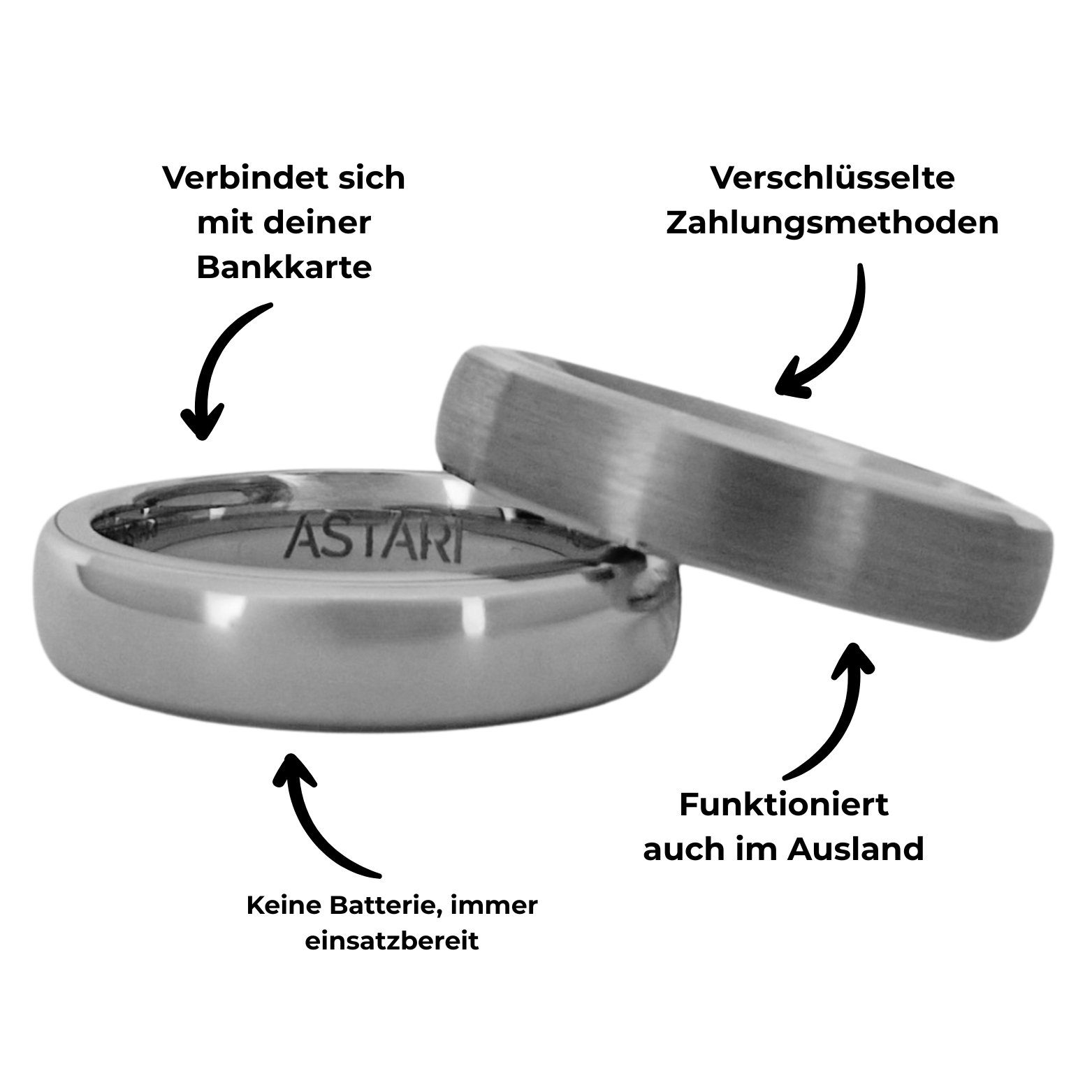 Dadurch sind Astari Wearables eine sichere, zuverlässige und private Zahlungsmethode – ganz ohne Smartphone, Portemonnaie oder Ladegerät.