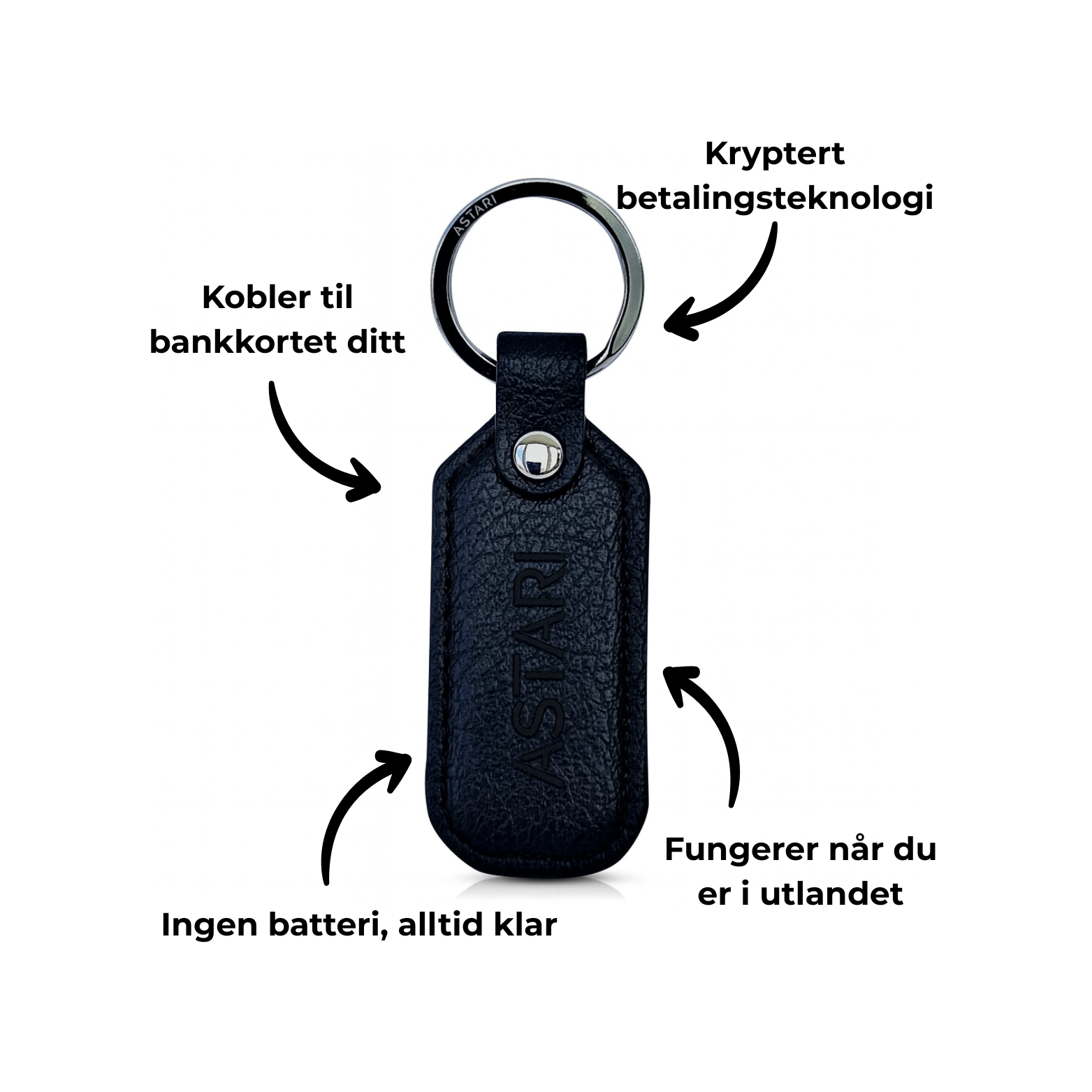 Dette gjør Astari-bærbare enheter til en trygg, pålitelig og privat måte å betale på – uten å trenge telefonen, lommeboken eller laderen din.