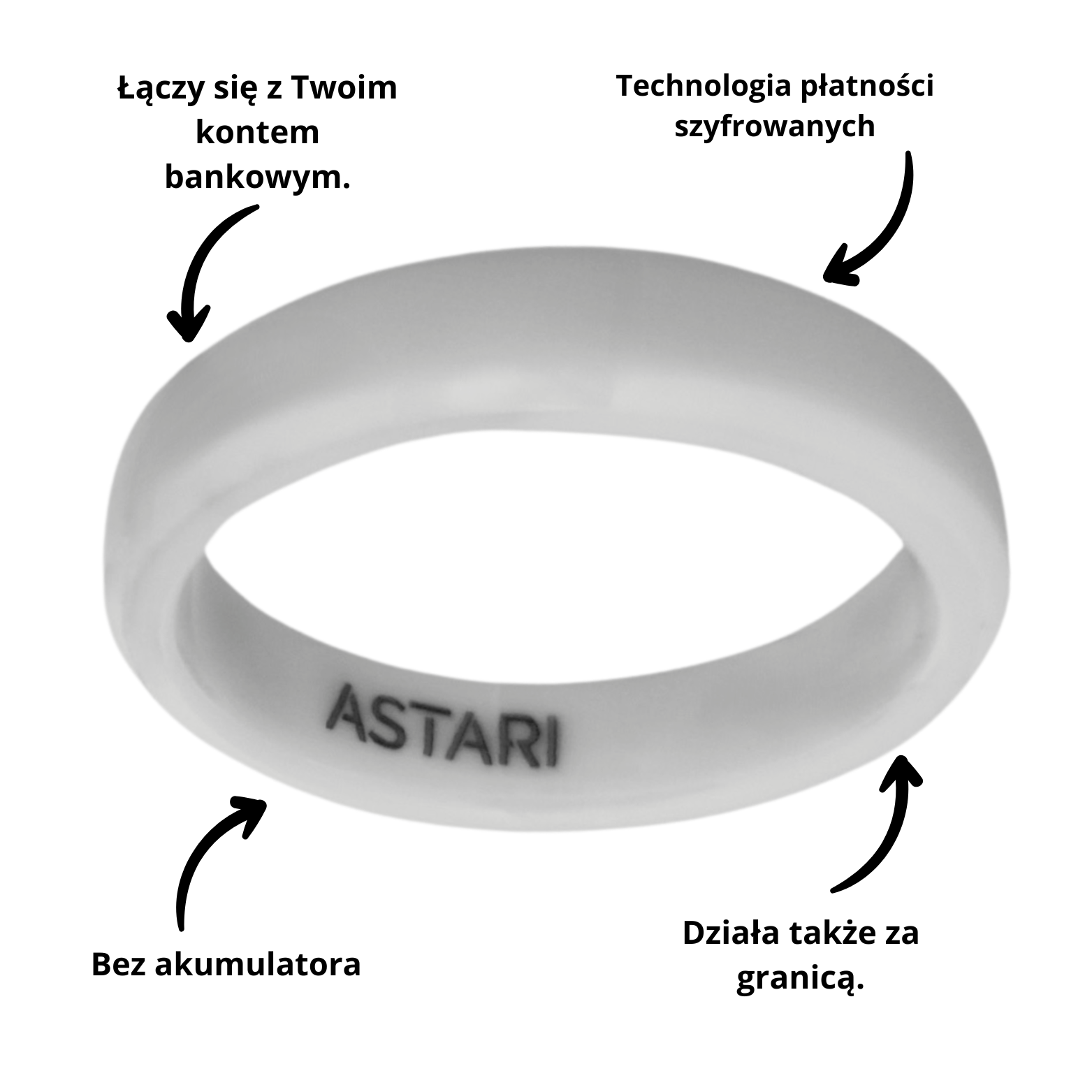 Dzięki temu urządzenia noszone Astari stanowią bezpieczny, niezawodny i prywatny sposób dokonywania płatności — bez konieczności używania telefonu, portfela ani ładowarki.
